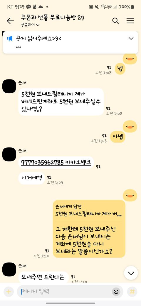 저 카카오톡채팅방에서 사기당했어요....