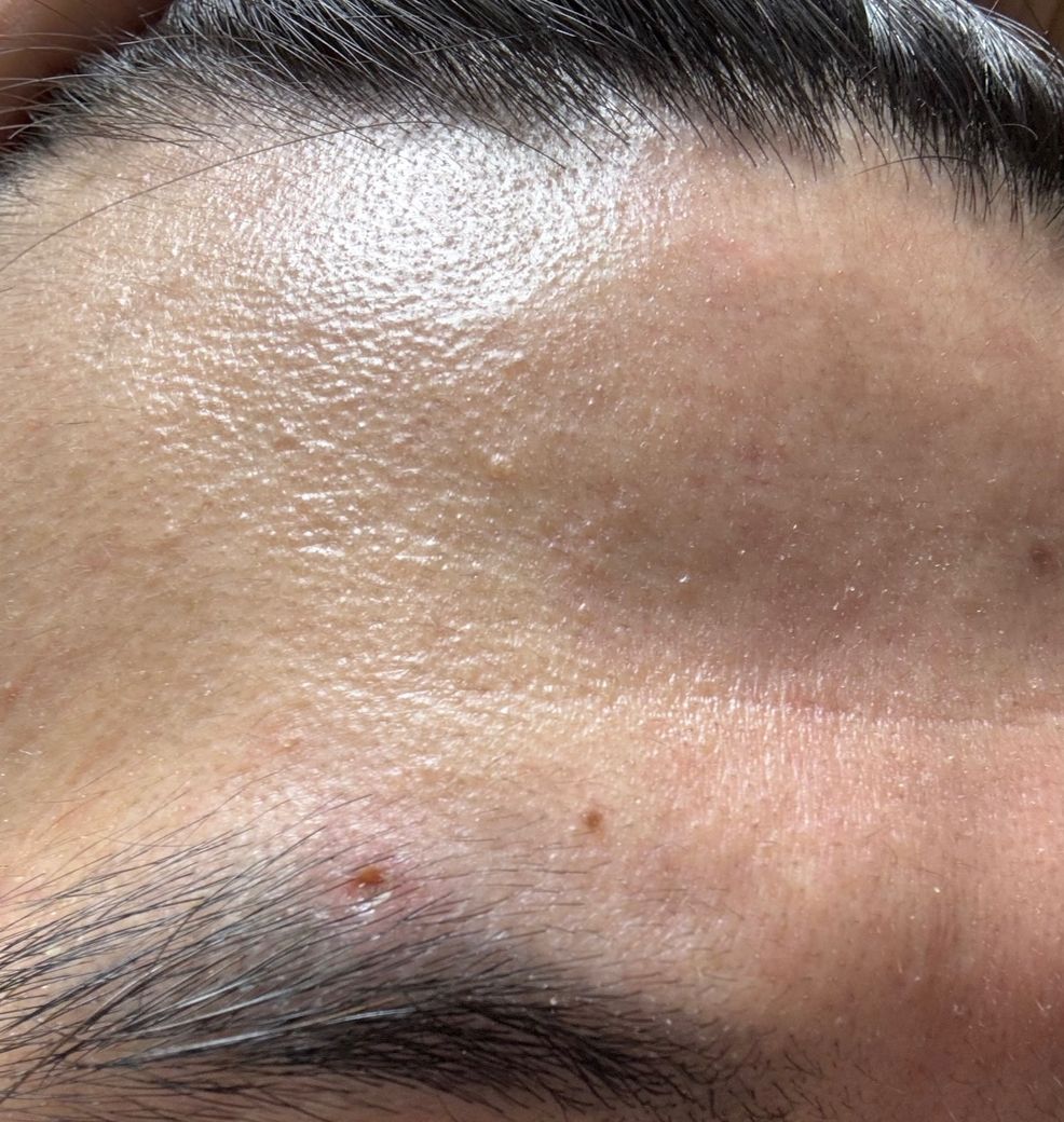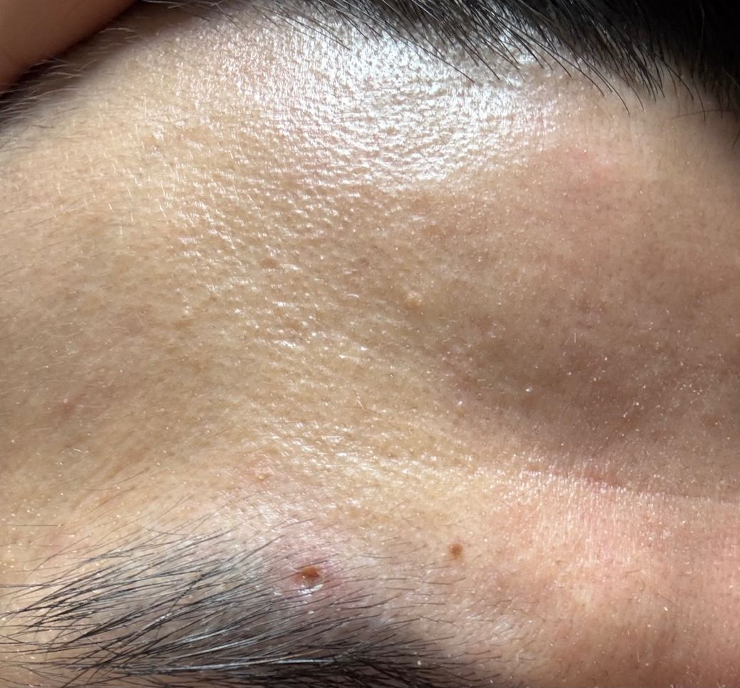 사진으로 정확한 상처 상태가 파악되진 않지만 우선 CO2 레이저로 눈썹 부위에서 여드름 압출을 받은 후 회복 과정에서 딱지가 떨어지면서 통증이 여전히 느껴지고, 상처가 약간 패여 있는 상황은 꽤 일반적인 회복 단계입니다. CO2 레이저는 피부에 작은 상처를 남기면서 그 부위의 피부를 재생시키는 과정이기 때문에, 압출한 부위에 통증과 패인 자국이 남아 있을 수 있어요. 이 통증은 시간이 지남에 따라 점차 줄어들고, 흉터가 남지 않도록 관리해 주는 것이 중요합니다.