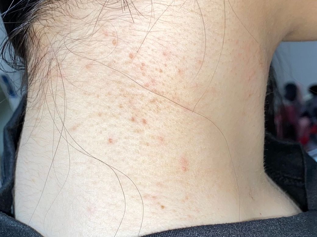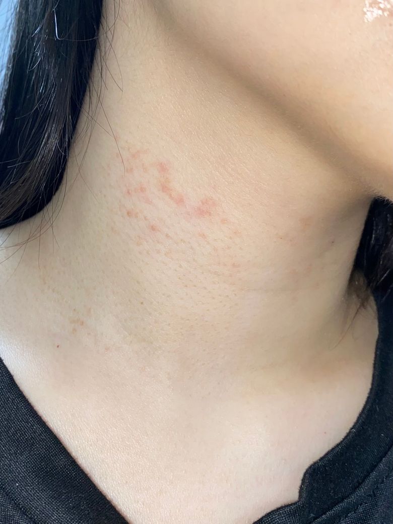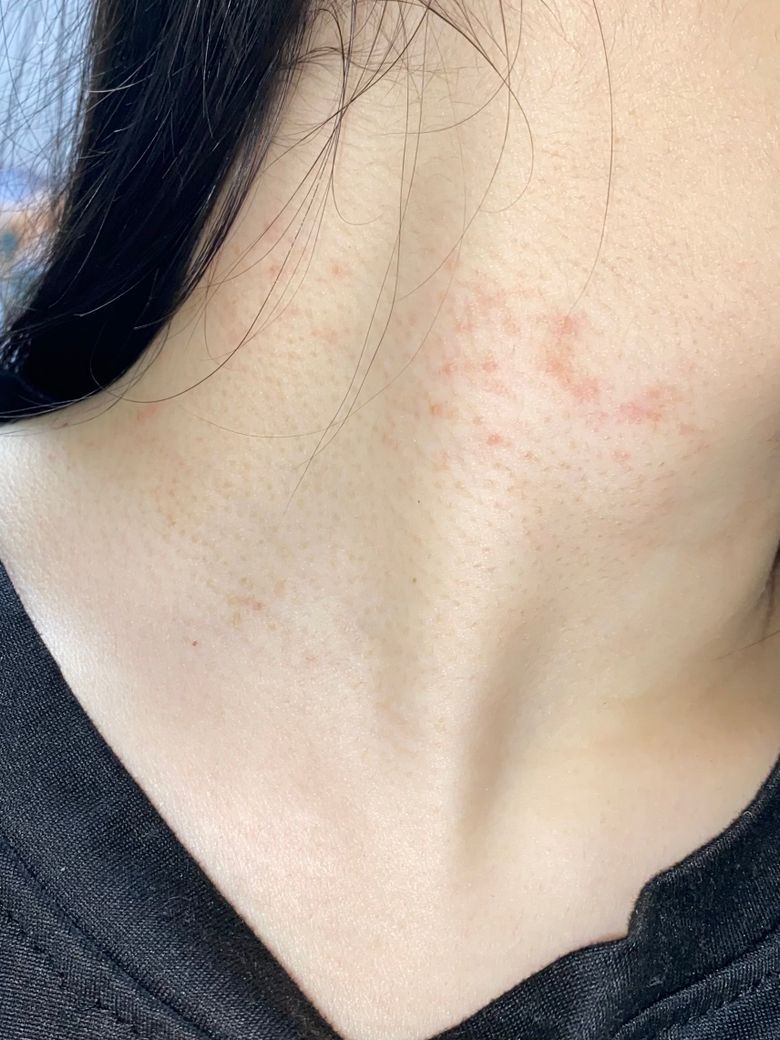 약 한달 전 부터 목에 붉은 발진이 하나 둘 생기기 시작했어요 초반에는 아무 느낌도 없고 그냥 붉은색 발진이 난거라 나아지겠지 라는 생각으로 뒀는데