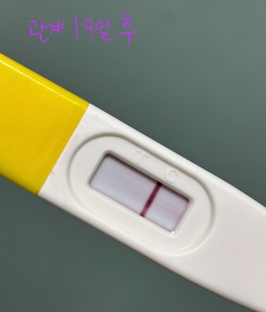 검사후 3분 후 찍은 사진이고요 그런데 이 임테기가 1-2시간 지난후에 보니까 약간의 선이 보이더라고요 (2번째사진)ㅠㅠ 같은 임테기두개로 검사했는데 하나는 같은 시간이 지나도 선이 안보이는데 첫번째 사진이였던 임테기가 두번째 사진의 아랫쪽 임테기인데 ㅜㅠ 시약선이겠죠 ? 그래서 제가 19일이 지나고 한 얼리임테기가 3번째 사진인데 이거는 완전 선명하게 한줄이에요