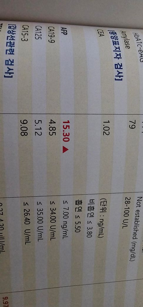 혈액종합검사를 했는데 AFP가 약간 수치가 올라갔다고해서 알아보니 괜히 걱정이 많이되는데 이정도면 괜찮은건가요 다른부분은 괜찬은거같아서요