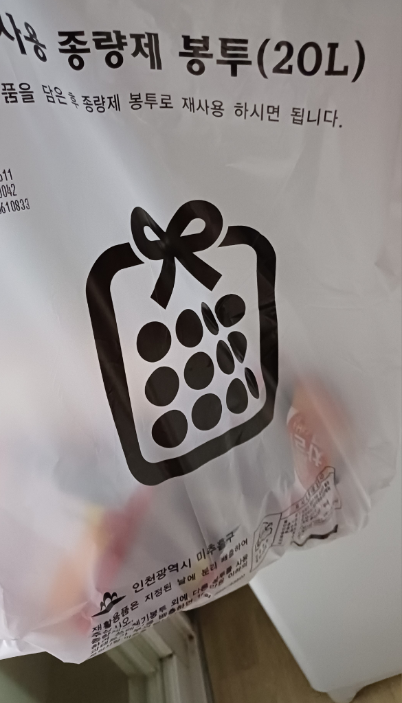 보통은 종량제 쓰레기 봉투에는 일반쓰레기만 집어 넣으시면 됩니다. 플라스틱, 종이, 스티로폼 제외
