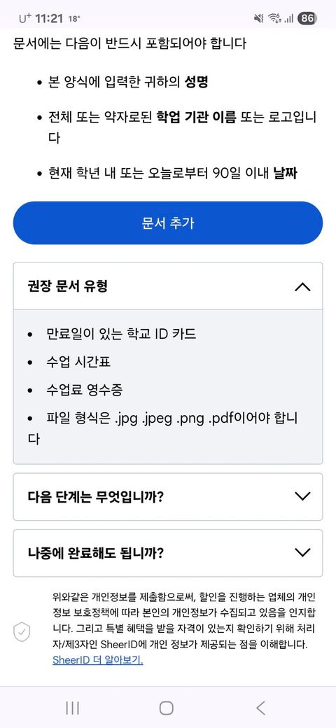 제가 대학생이라서 이번에 Gemini Pro를 1년간 무료로 이용하기 위해 수수료까지 내면서 대학 홈페이지에서 재학증명서를 발급받아서 구글 One의 재학증명서 첨부 페이지에 제출한 다음 시간이 지나 메일이 와서 확인했는데 이렇게 뜨면서 반려가 됐습니다... 분명히 공식적으로 발급받은 증명서인데 뭐가 문제인지 모르겠네요... 혹시 증명서를 국문이 아닌 영문으로 제출해야 하는 건가요, 아니면 재학증명서 말고 다른 증명서도 필요한 건가요?