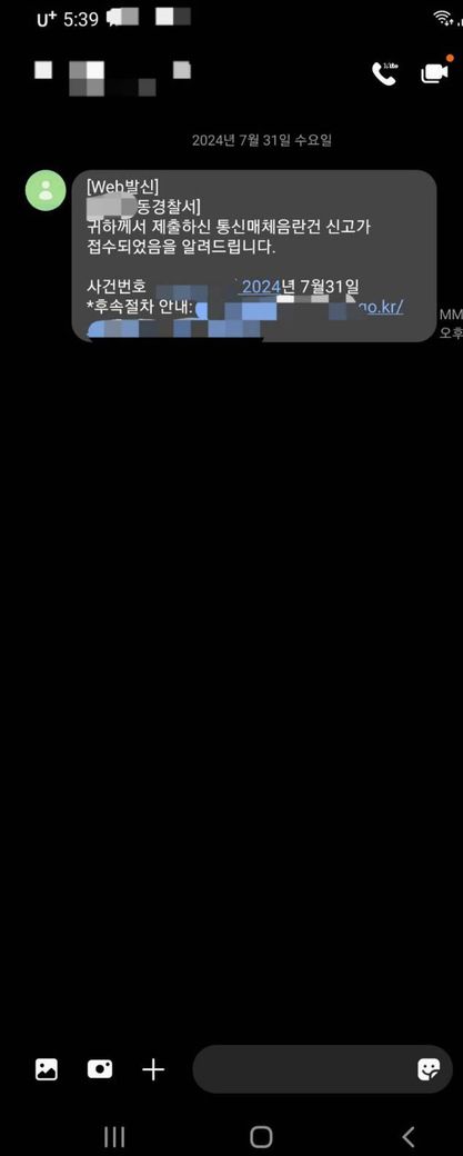 어떤분이 절 통매음으로 신고한다고 하신 뒤 첫번째 사진을 보냈고, 제가 돈을 보낸 뒤 두번째 시진을 보냈습니다. 그런데 갑자기 보상을 더 요구합니다. 사이버사의 사건이 접수되면 정말 저렇게 문자가 오나요?
