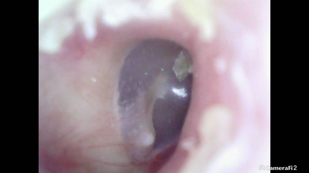 사진 해상도가 제한적이지만 보이는 범위에서는 고막 전체 형태가 유지되어 있고, 천공이나 심한 발적, 팽륜 같은 급성 이상 소견은 뚜렷하지 않습니다. 말씀하신 흰색 점처럼 보이는 부분은 고막의 정상적인 반사(빛 반사), 각질 또는 건조한 분비물이 붙어 보이는 경우가 흔하며, 단순 중이염에서 보이는 고름이나 심한 혼탁과는 양상이 다릅니다.