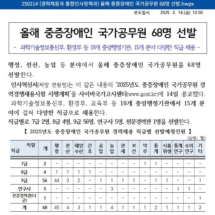 중증장애인 공무원 직렬!!!!!!