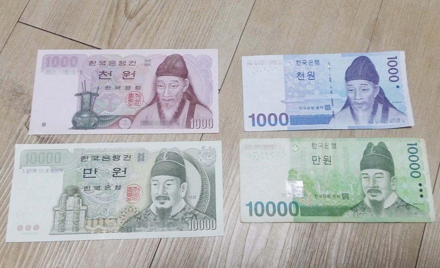 만원은 크기만 다를 뿐 초록색 그대로 나왔는데요.