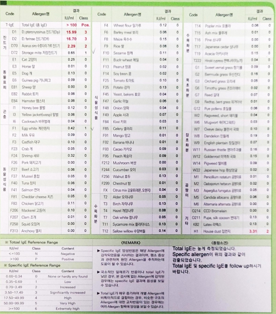 2년전에 알레르기 검사한 표 첨부합니다.왜이럴까요?ㅜㅜ