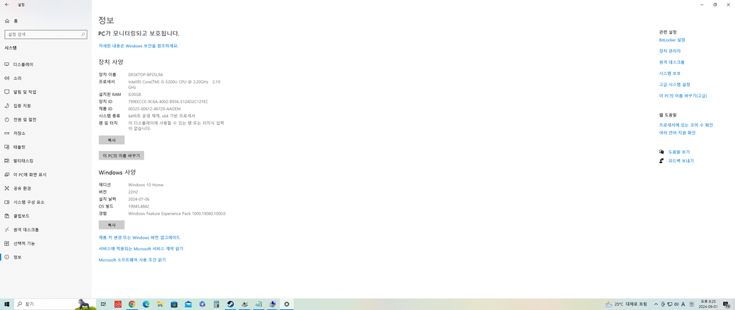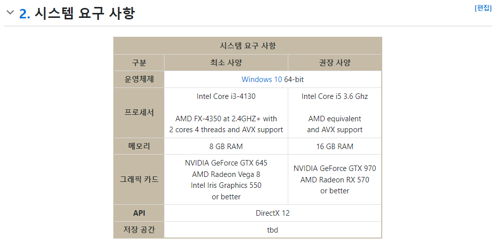 위 사진들은 제 컴퓨터 사양이고 아래 사진은 하려고 하는 게임 최소/권장 사양입니다.