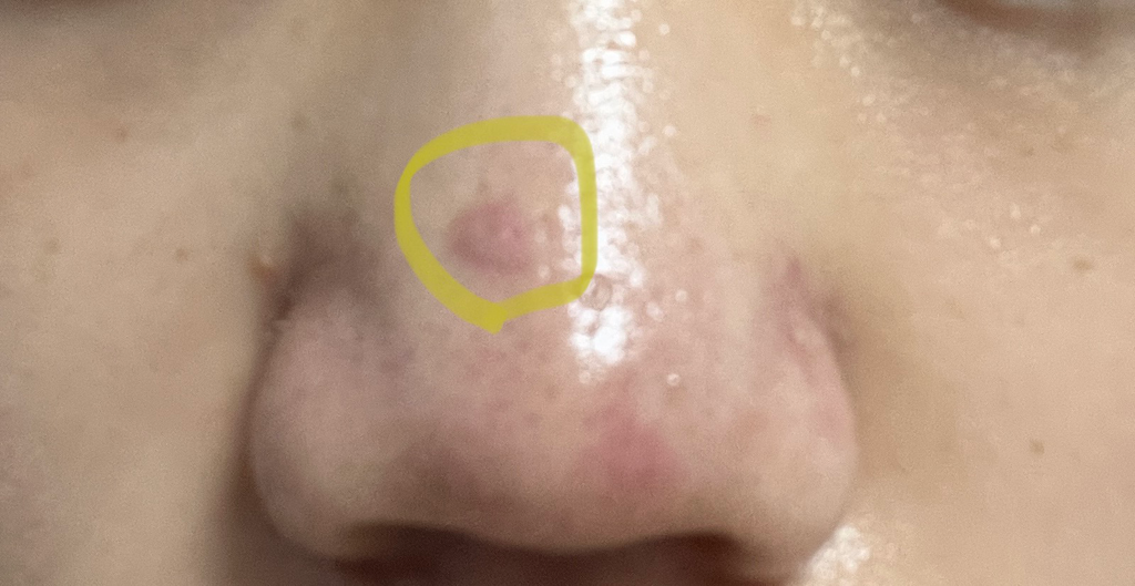 여드름성 모낭염일 가능성이 높아 보입니다.