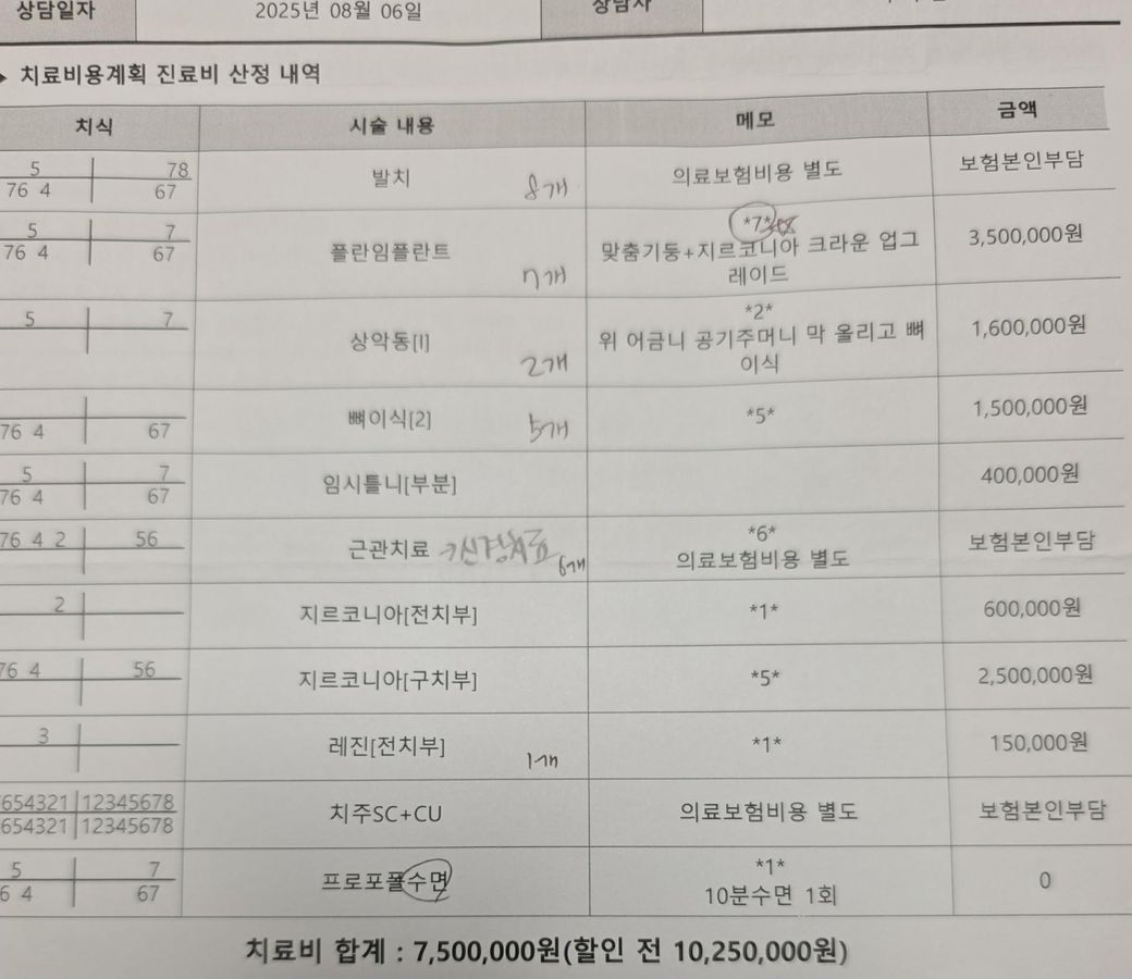 금액은 치과에서 정한거라 치과마다 다를수 있습니다. 추후 보험사에 청구할때는 금액은 상관없고 차트가 필요 할꺼에요.