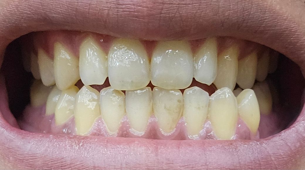 사진처럼 앞니가 부분부분 깨진건지 변색이 된건지 모르겠습니다. 몇년전에 비해 약간 더 심해졌는데 어떤 치료를 받아야하나요??