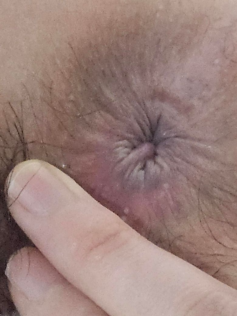 사진상 항문 주름 부위가 약간 부어 보이며, 힘을 줄 때 더 도드라지는 형태입니다. 이런 양상은 항문 주위 정맥 울혈, 또는 일시적인 항문 점막 부종에서 비교적 흔히 보입니다. 통증, 출혈, 심한 덩어리 돌출이 없다면 급성 질환보다는 경미한 항문 정맥 확장이나 부종일 가능성이 높습니다.