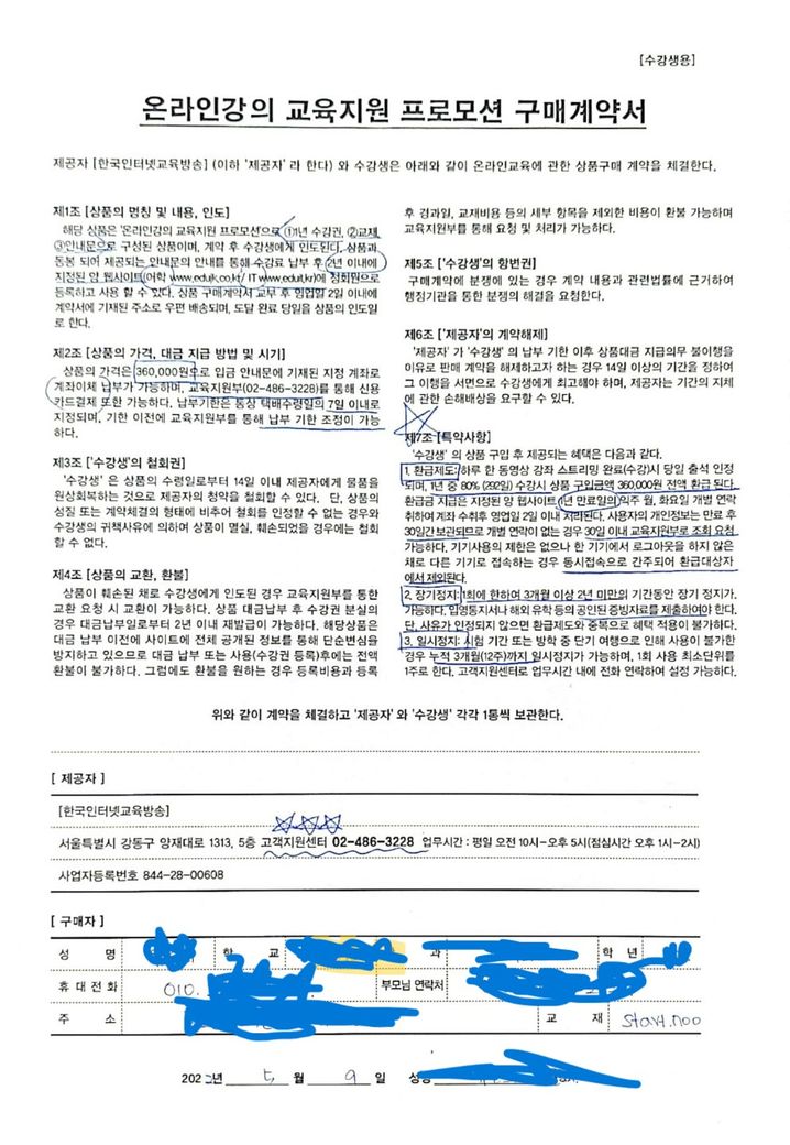 인터넷 강의 위약금 ,,,손해배상,,, 관련 질문드립니다.