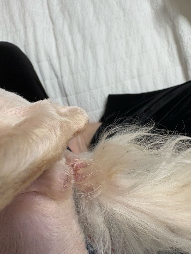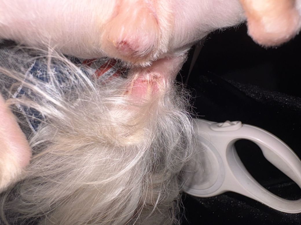 강아지가 자꾸 핥고 소리내길래 봤더니 상처가 있네요. 어디서 다친걸까요?
