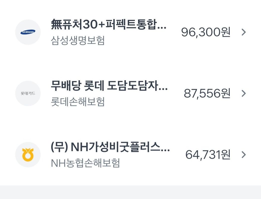 직장생활을 시작하면서 손해보험 2개를 가입을 해서 그전에 부모님이 가입해주신