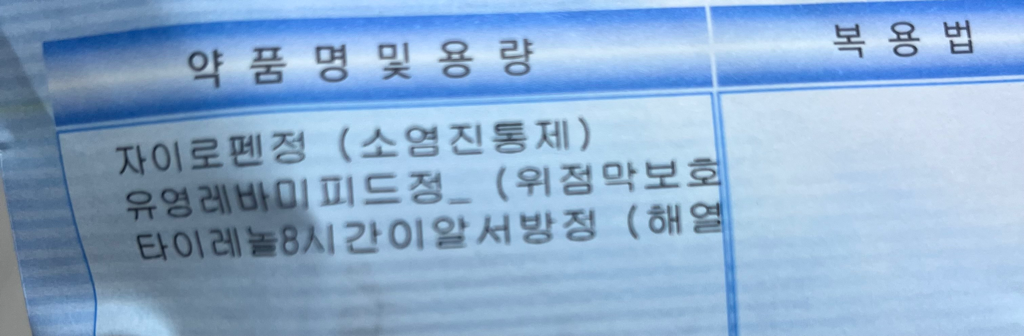 자이로펜정, 유영에바미페드정, 타이레놀8시단이알서방정 처방 받았다면