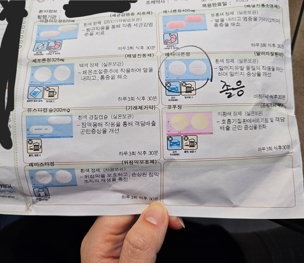 만약 이 약을 빼고 복용했는데도 안좋다면 병원으로 가셔야합니다.
