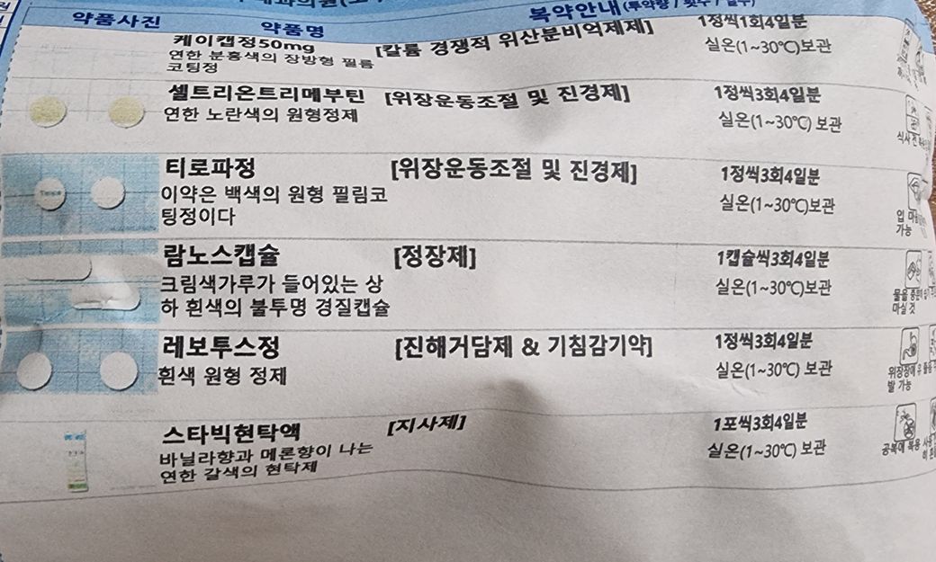 다만 처방받으신 약들을 보니 속이 좀 안좋으신 것으로 보이는데