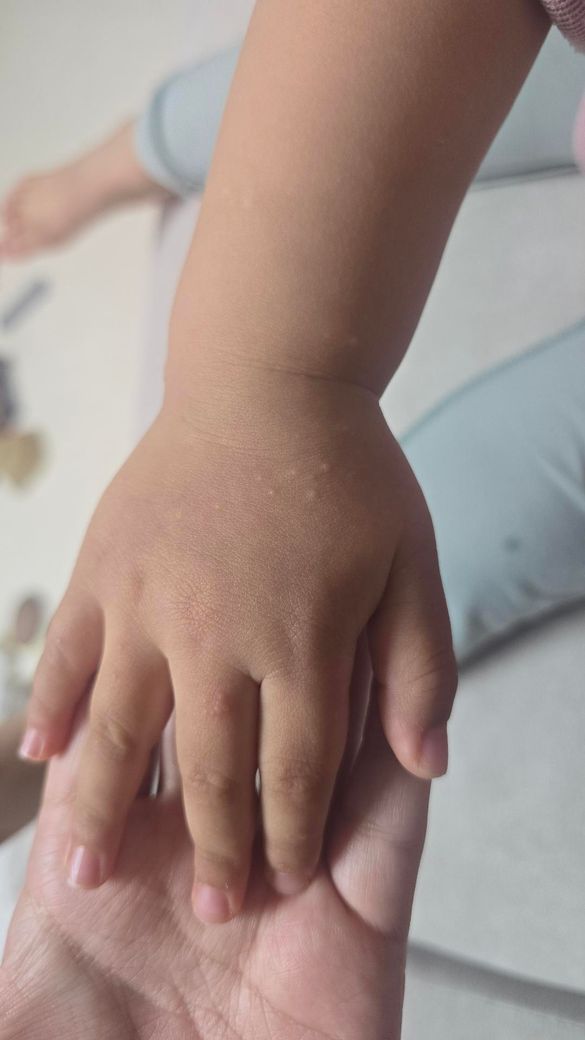 아이 손에 생긴 투명하고 올록볼록한 모양은 물사마귀일 가능성이 꽤 높습니다.