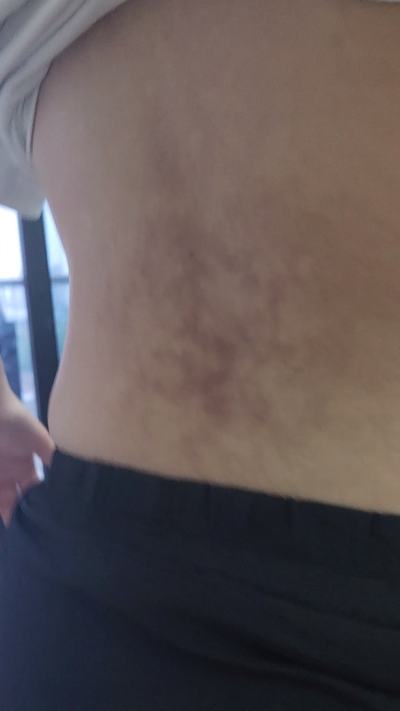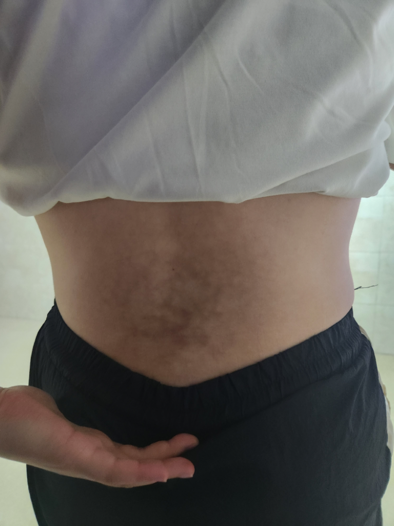 erythema ab igne (열성혼반) 이라고 하는 현상입니다.