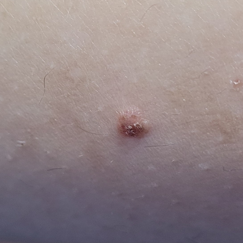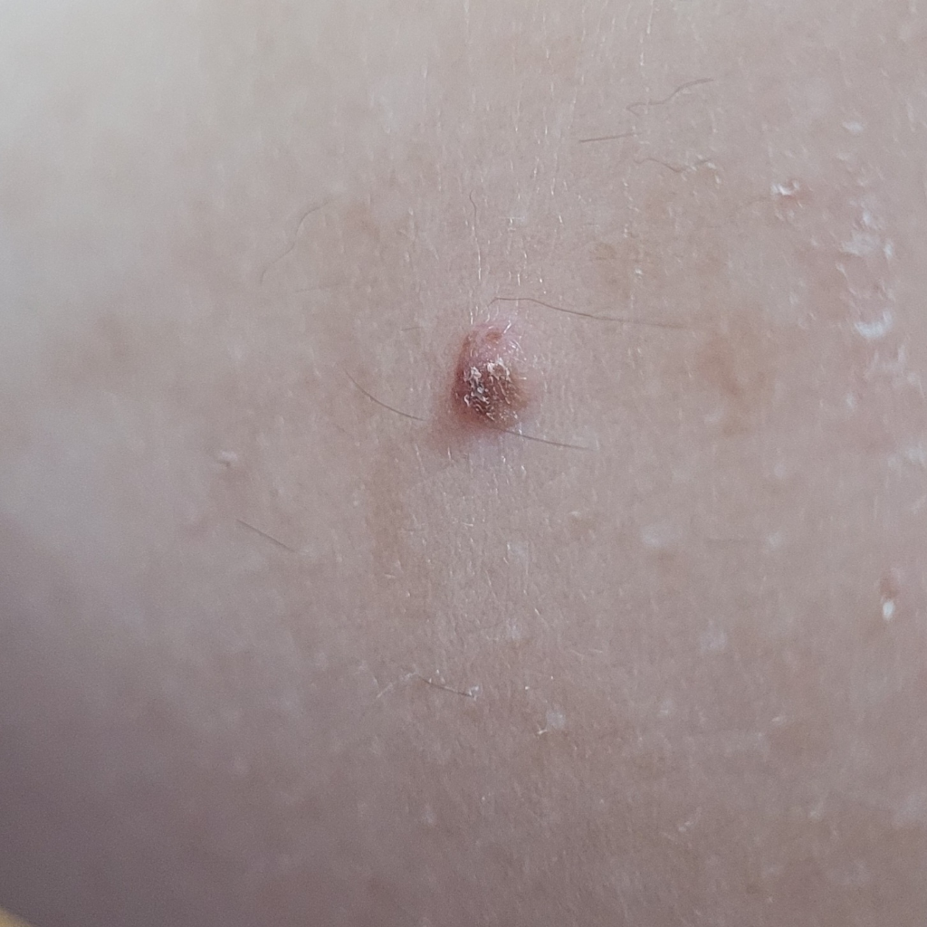 최대한 해당 부위는 만지지 않으시는 것이 좋고, 지켜보시다 해당부위 진물, 통증, 열감 등의 증상이 동반된다면 피부감염의 증상일 수 있으므로 병원 방문해보시는 것을 권유 드립니다.