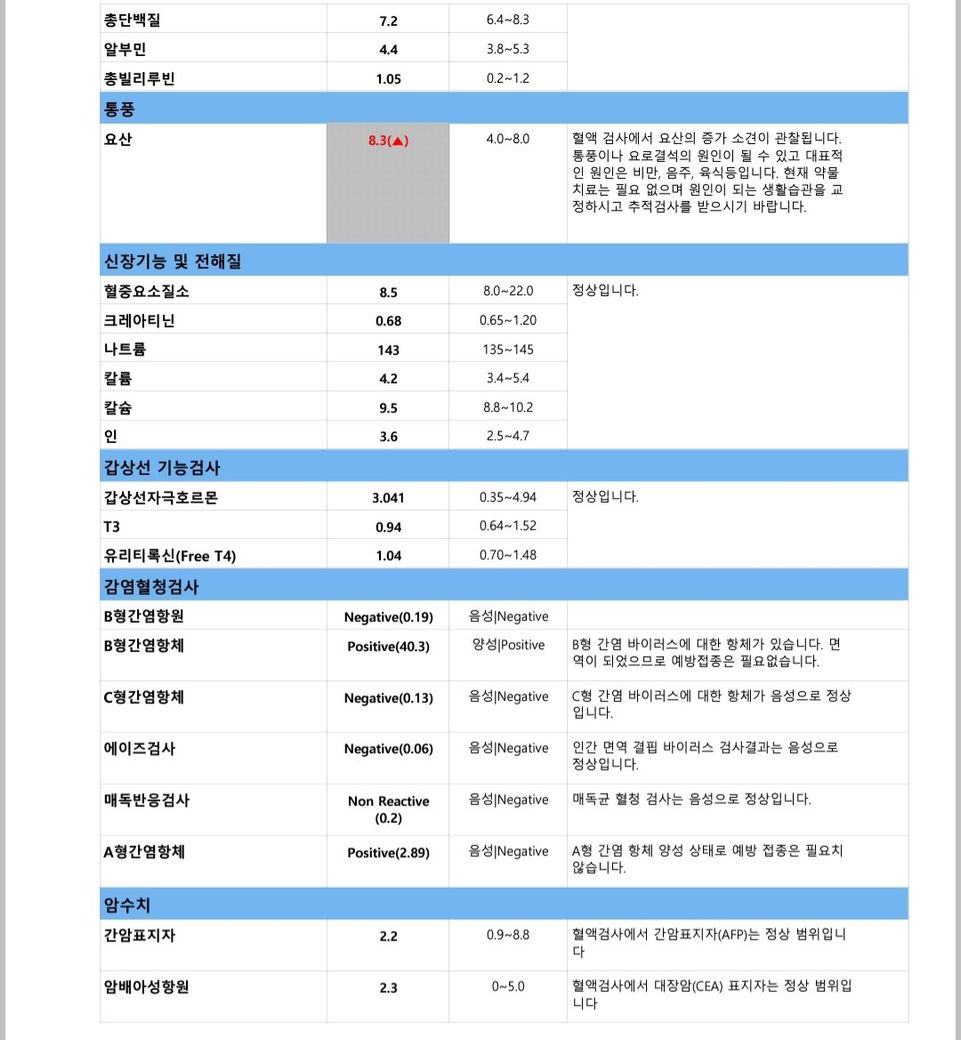 11. 건강검진 당시 대장내시경은 미처 신청하지 못했지만 위내시경과 대변잠혈검사에선 이상이 없다고 나왔습니다.