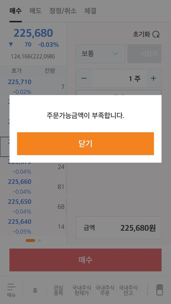 증권 계좌에 돈도 넣어놨는데 금액이 부족하다면서