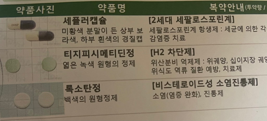 두번째 있는 티지피시메티딘정은 유즙분이 부작용이 나타날 수 있어요.