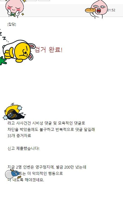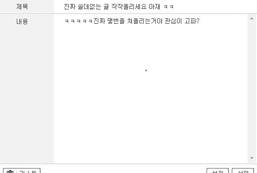 쪽지로도 '진짜 쓸데 없는글 작작올세요 ㅋㅋㅋ 진짜 몇번을 쳐 올리는거야? 관심이 고파?'라는 내용을 보낸적이 있었는데