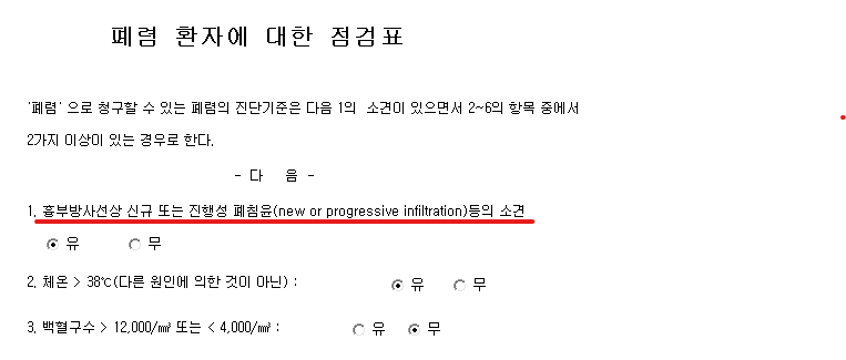폐렴 진단시 조건이 폐침윤의 유무인데요