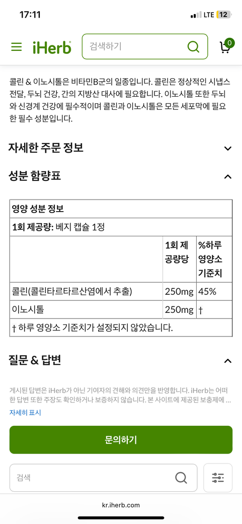 특별히 콜린과 이노시톨의 효능이 필요한 경우가 아니라면 굳이 추가하실 필요는 없어보입니다