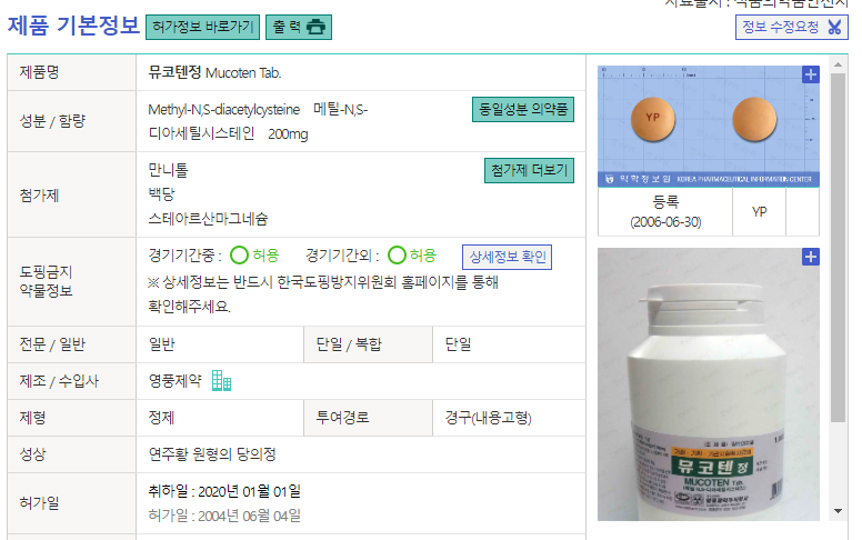 2. 뮤코텐정은 무코신일정과 달리 급여가 잡히지 않는데 혹시 중대한 사고가 발생하거나 부작용이 발견되어 허가가 취소 된걸까요? 아니면 더이상 생산되지 않아서 그런 건가요? 더이상 시중 약국에 유통되지 않는 약제인가요? 단순히 급여에서 비급여로 전환된 약물인건가요? 무코신일정은 급여 약제로 잡히는데 반해 뮤코텐은 동일류의 약물 같은데 허가가 취소된 것 같아 무슨 문제가 있나 싶어 여쭤봅니다. 아는 분은 뮤코텐정을 올해 아산병원에서 처방 받아 드시고 계시다고 하셨거든요.