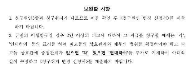 민사 소송 중 보정 명령을 받았으나 이해가 잘 되지 않습니다