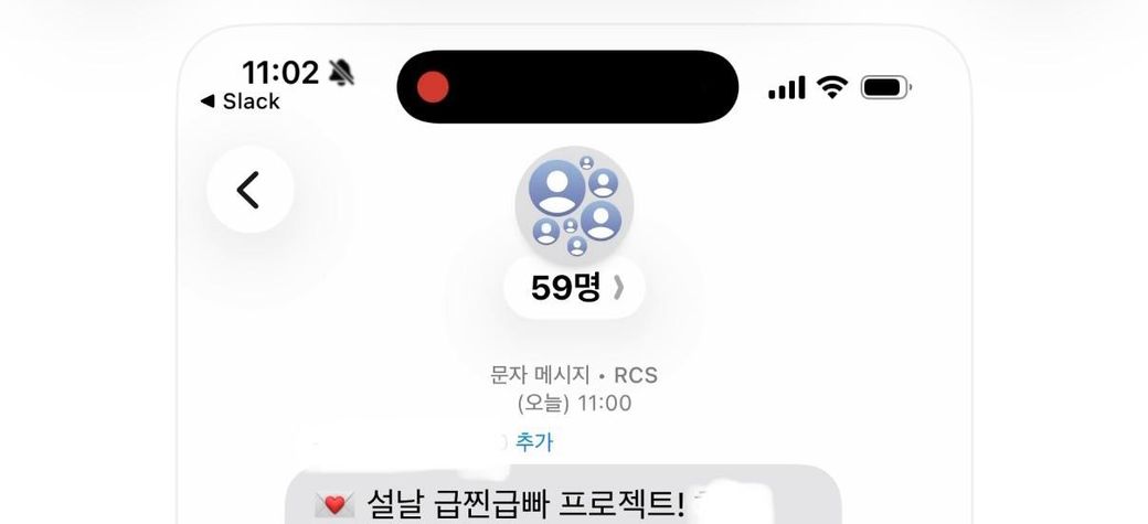 여기서 다른 59명의 연락처가 무단으로 공개되었어요. 찾아봤더니 RCS 형식의 대화 문자더라구요.