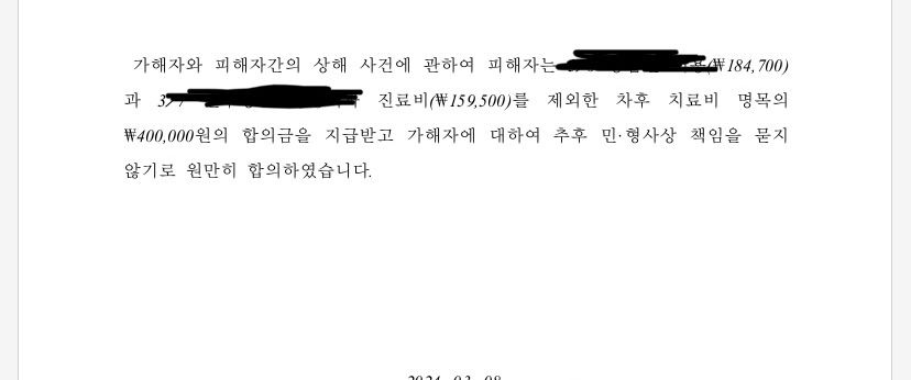 합의서 내용은 중요부분만 가린 후 첨부하였습니다.
