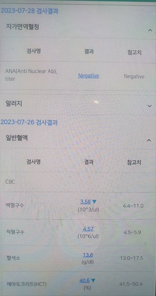 안녕하세요 요즘 양쪽 갈비뼈찌릿, 양쪽 고관절, 허리통증이 있어서 피검사를 받았습니다.