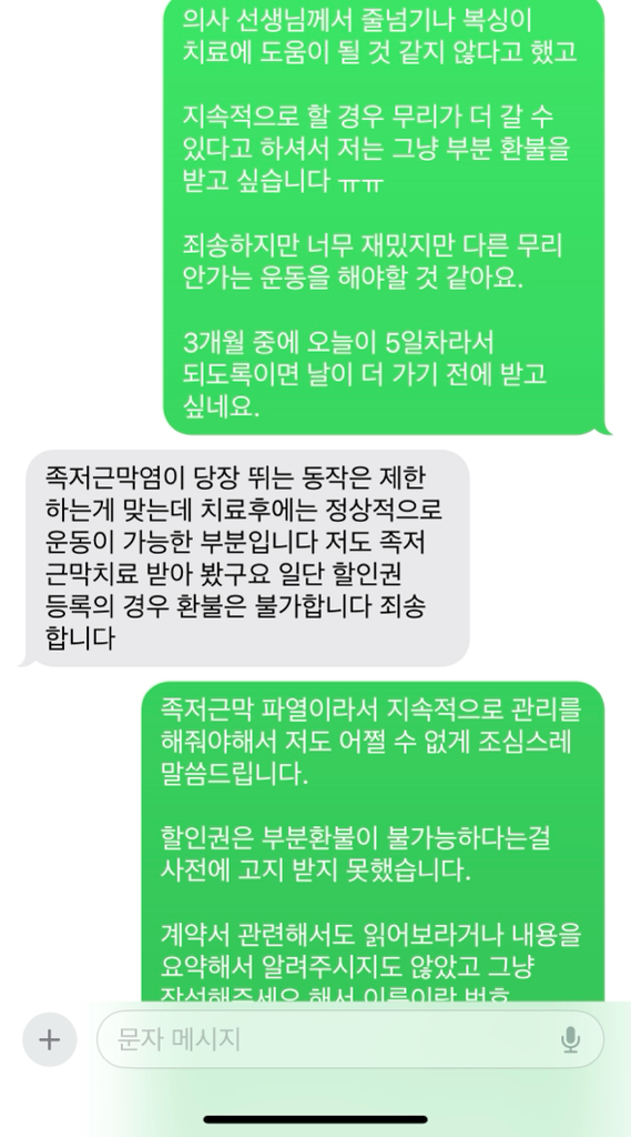 아쉽지만 운동을 할 수 없을 것 같다고 부분 환불 받고 싶더고 연락드렸더니