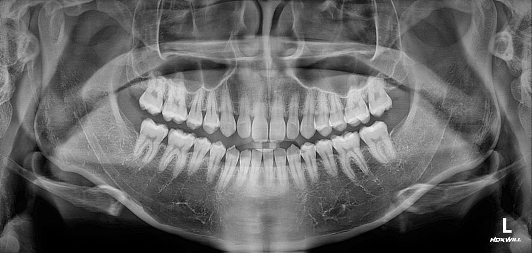 오른쪽 앞니 두번째 치아의 반대교합을 제외하면 치열이 거의 정상에 가깝습니다.