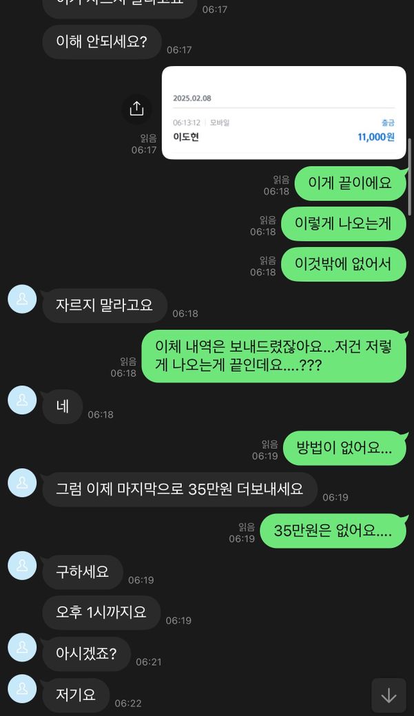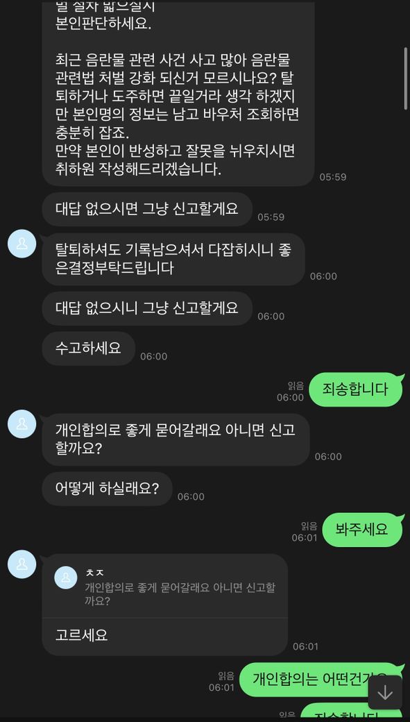 라인에서 사진과 같은 대화내용 이후 제가 성기 사진을 보냈고 사진을 바로 지우고 상대방이 고소한다며 합의금을 받고 하였습니다 도와주세요