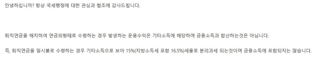 이때 은행에서 받은 영수증에서는 회사 불입액+ 회사에서 지급받을 당시 운용수익 5천200만원은 퇴직소득, 10만원은 기타소득으로 기재하여 주었습니다.