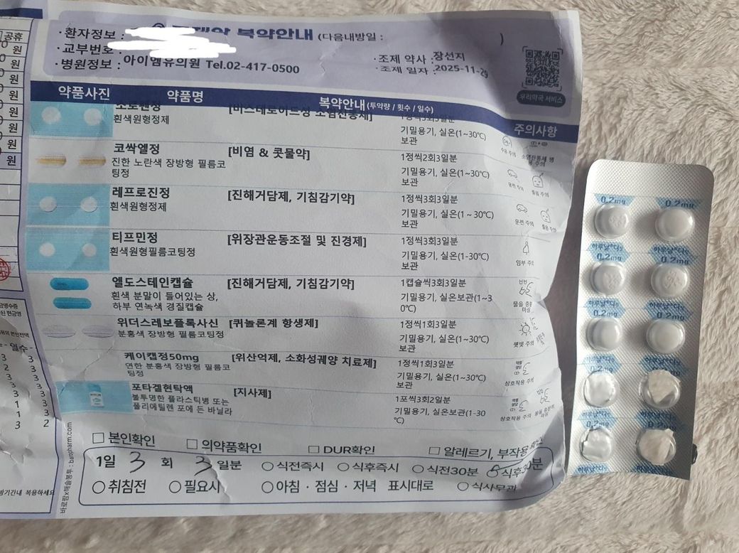 최근에 A형 독감을 앓은 후에 약간 기침과 두통 등 여파가 남아있어서 받은 약과, 하루날디정이라는 약입니다.