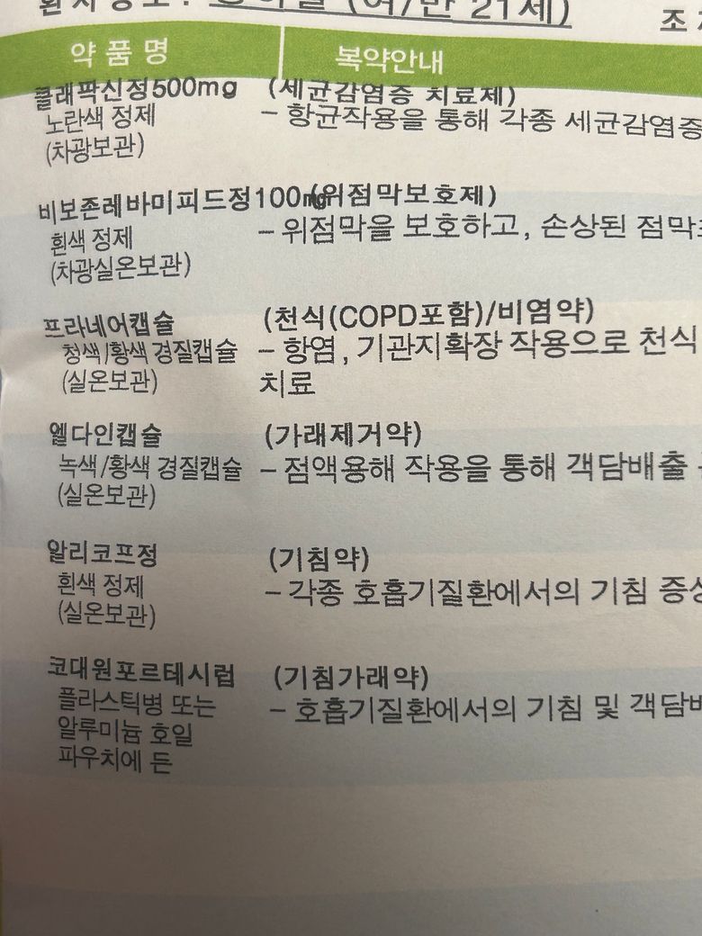 내과에서 기침가래 약이랑 정형외과에서 갈비뼈 금가서 진통제 약 처방받았는데 같이 복용해도 되나요? 내과에서 같이 먹어도 된다고 하셨는데도 불안해서요..