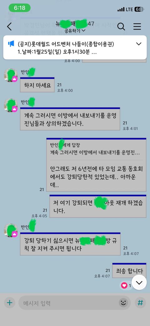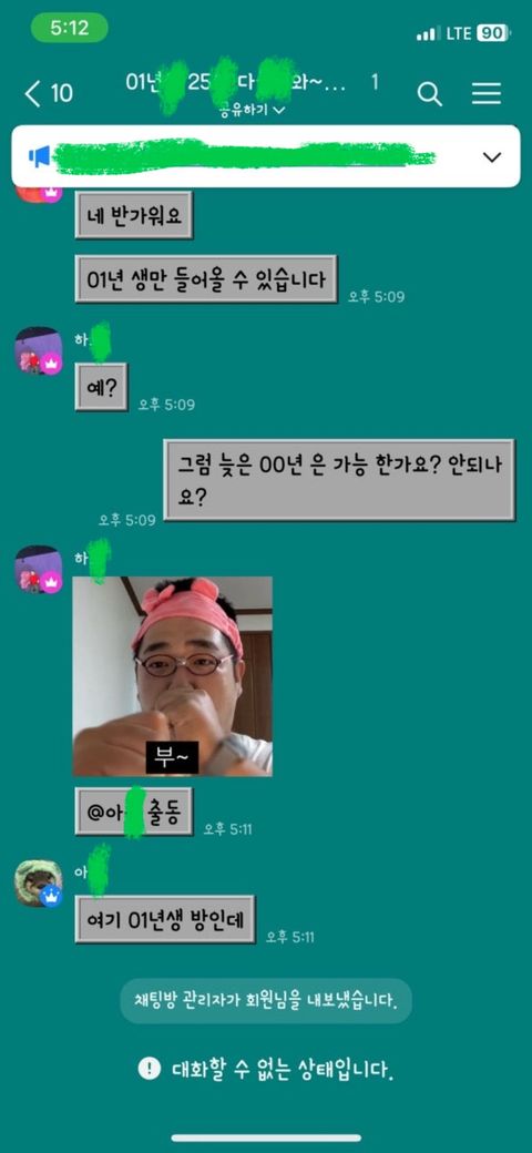 저는요. 1째는 2012년에 네이버카페 슈x 마xx x잡이 에서 강퇴 되었고 2째는 2020년에 페북그룹 대xx통 마니x 에서 강퇴 되었고 3째는 2025년에 카톡옵챗방 f* 당* 풋*팀 에서 강퇴 되었습니다.
