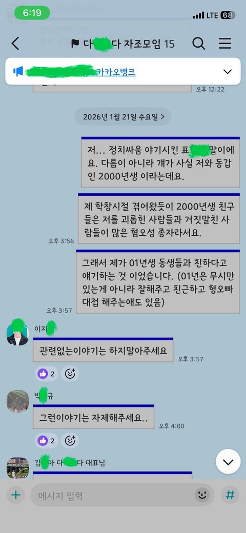 20260121 수요일날 저희 장애인 정신과 모임에서 사건 하나가 터졌는데요. 제가 혐오하기 고민과 모임강퇴 고민이 있었습니다. 저는 박씨 장애인 00년생 남자입니다.