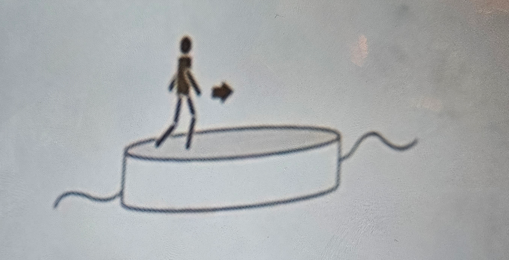 물에 떠있는 원형 판위에서 반시계 방향으로 달려도 원형 판은 시계방향으로 돌아가지 않습니다.