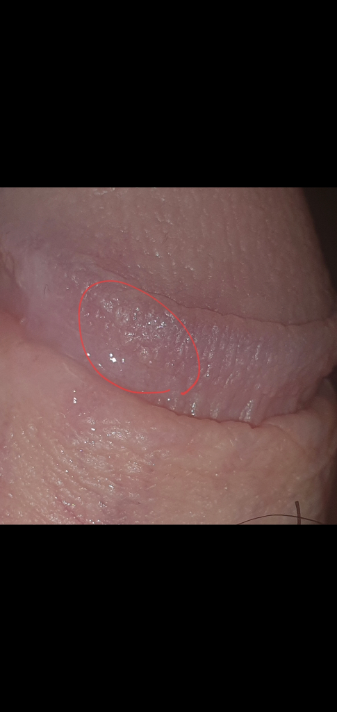 안녕하세요. 채홍석 의사입니다. 전형적인 진주양음경구진같지는 않아보이네요. 곤지름(콘딜로마)의 가능성도 있는 것 같습니다