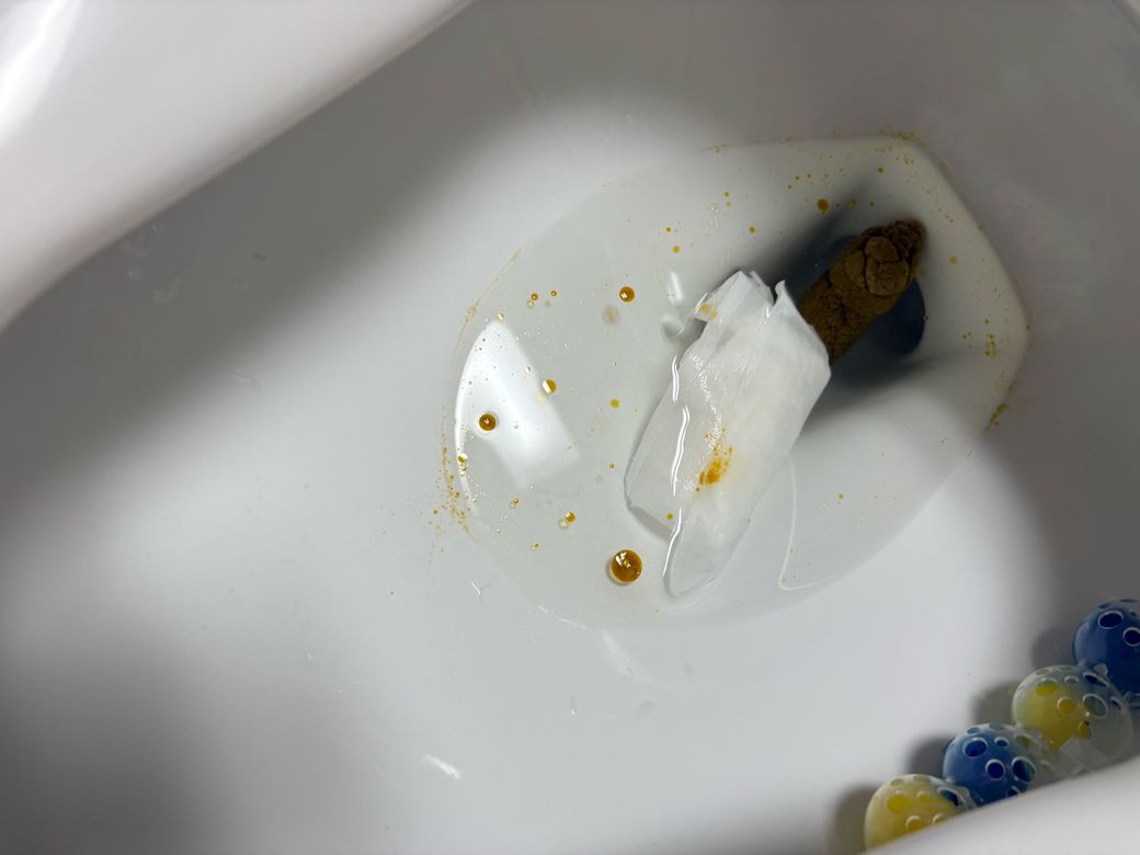 저녁 8시쯤 또 대변에서 붉은 기름이 뜨고 뒷처리를 해주는데 티슈에 기름이 가득 보이네요ㅠ