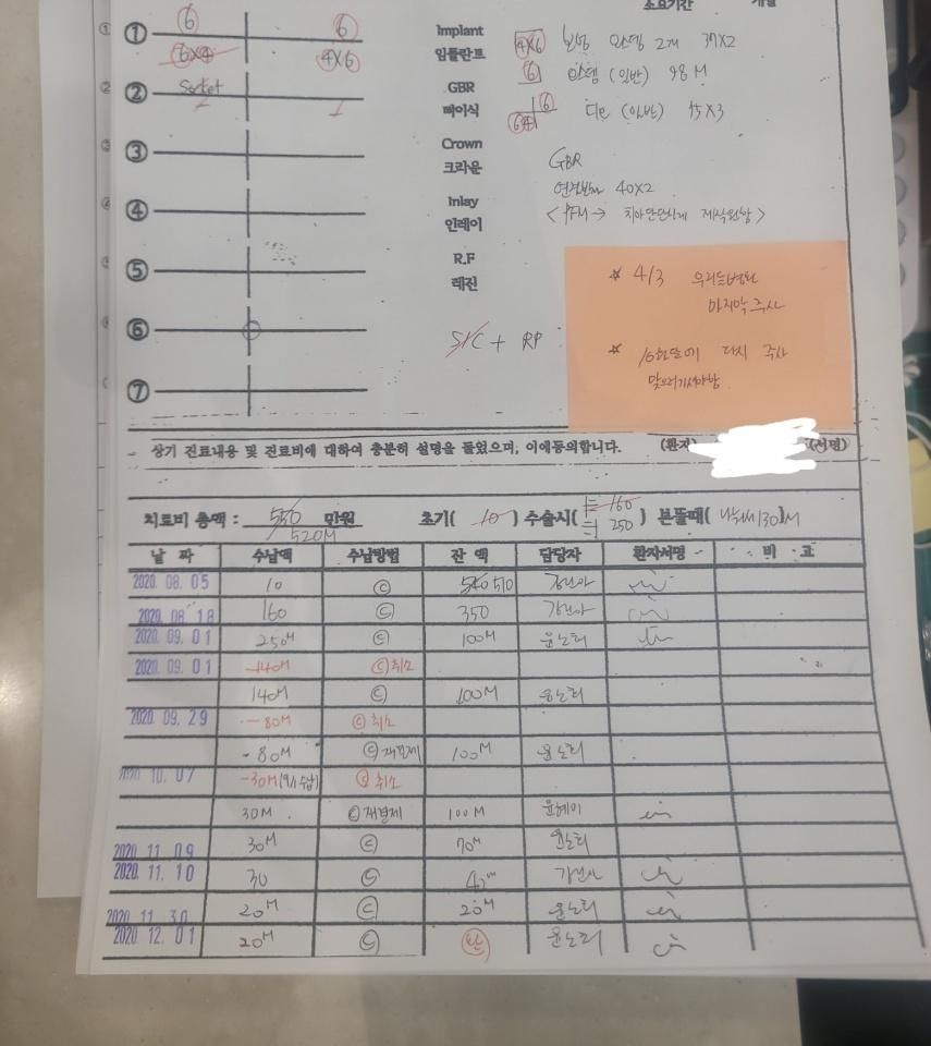 20년도에 임플란트 계산서를 보는데 계산이 안맞아서 사진 보시고 좀 알려주세요.