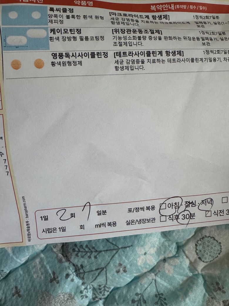 이런식으로 항생제는 필요 시 다른 계열과 함께 복용하도록 처방이 나오는 경우도 많습니다